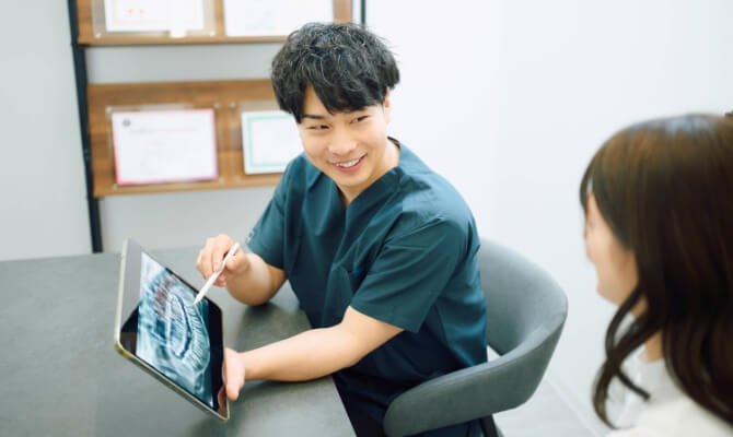当院では、治療技術だけでなく、患者さまとの対話を何より大切にしています。疑問や不安を残したまま治療を進めることはせず、治療内容はもちろん、メリット・デメリット、費用や通院期間についても、わかりやすくご説明します。