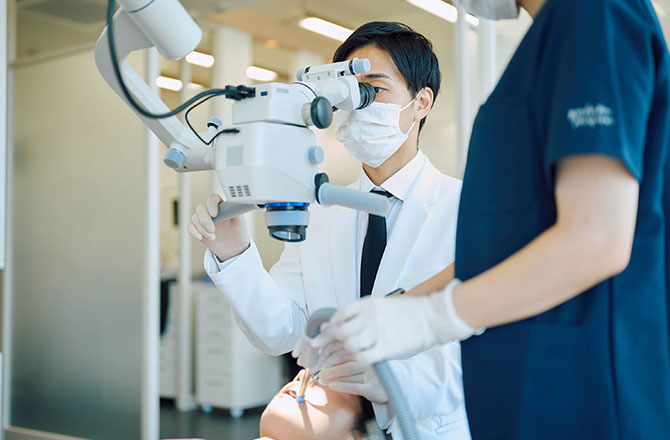 一般的なケースはもちろん、より高度な技術を要する難症例の場合には、保険適用では使えない高品質な材料や最新機器を活用した、世界基準の根管治療(自費診療)にも対応可能です。