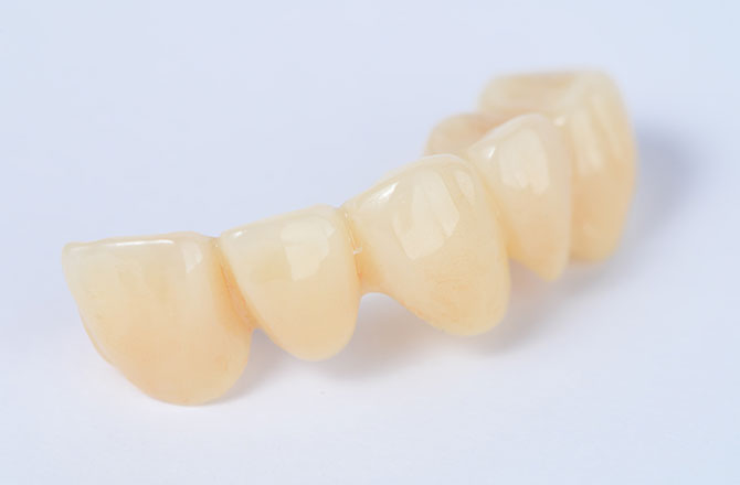 セラミックは、天然の歯に近い白さと透明感があり、口元になじみやすい素材です。また、変色しにくく、時間が経ってもきれいな状態を保ちやすいのも特長のひとつです。
