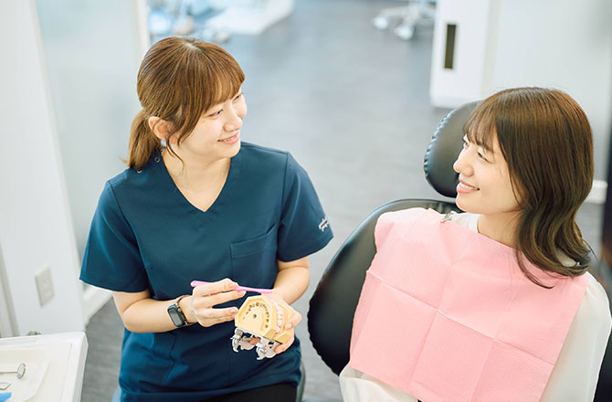 毎日のブラッシングは、虫歯や歯周病を防ぐ基本です。患者さまの歯並びやお口の状態に合わせて、一人ひとりに合ったブラッシング方法を丁寧に指導します。