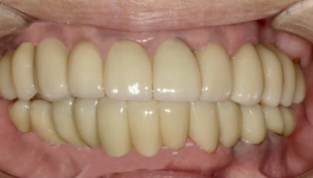 症例名 上下全顎インプラント治療 患者さまの主訴 ボロボロの歯をなんとかしたい・美味しくご飯を食べたい 治療内容 上下インプラント治療、ジルコニア治療、マイクロエンド治療、骨造成治療 患者さまの年齢 64歳 患者さまの性別 男性 治療期間 1年7ヶ月 治療にかかった総額 440万(税込) 治療する際に起こるメリット 治療により、見た目の改善、噛み合わせ・咀嚼機能の改善、清掃性向上(虫歯・歯周病リスク低下につながる場合)などが期待できます。効果には個人差があります。 治療する際に起こるリスク・副作用 治療には、疼痛・違和感、虫歯/歯周病リスク、補綴物の破損/脱離、歯肉退縮などの可能性があります。