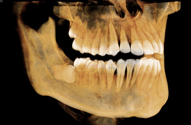 根管治療を成功させるためには、歯の内部構造を正確に把握することが重要です。当院では治療前に歯科用CTを撮影し、根管の本数や形態、湾曲の程度、感染の広がりなど、肉眼ではわからない部分まで3次元的に確認します。これにより、見落としのない根管治療が可能となります。
