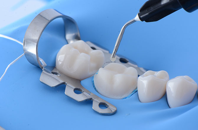 つくった土台に合わせて作製した被せ物を装着し、噛み合わせを整えるため、微調整も行います。