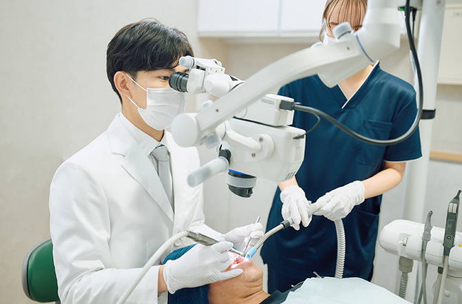 一般的なケースはもちろん、より高度な技術を要する難症例の場合には、保険適用では使えない高品質な材料や最新機器を活用した、世界基準の根管治療(自費診療)にも対応可能です。