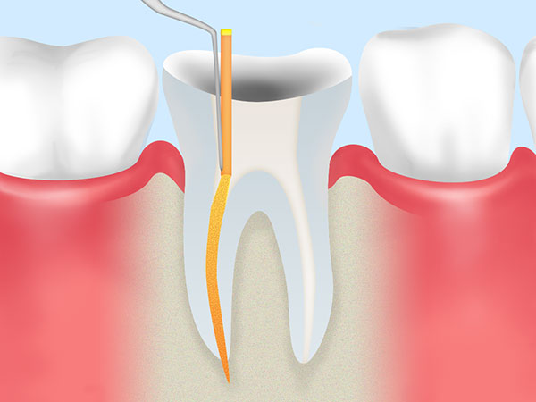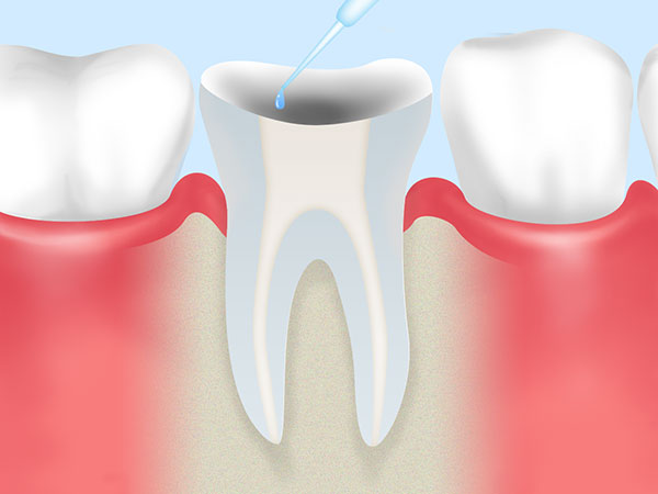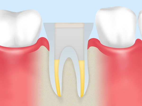 十分な洗浄・消毒後、炎症がないことを確認したうえで、根管内部に薬剤を隙間なく充填して封鎖します。被せ物を装着するための土台もつくります。