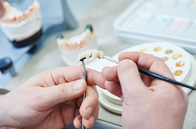 当院では、法人で技工所を備えており、専任の歯科技工士が作製に携わっています。歯科医師と技工士が綿密にやり取り可能なため、患者さまの歯の色、質感、形態を、より周囲の歯と調和したセラミックを作製できます。機械だけでは表現できない繊細な美しさを表現できるのが大きな強みです。