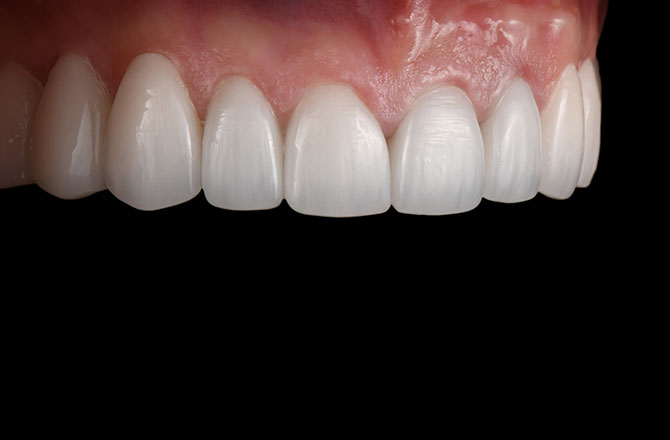 天然歯に近い白さだけでなく、透明感や艶も備えており、自然で美しい見た目を実現できます。耐久性も高く、汚れや変色がつきにくいため、美しさを長く保てる素材です。