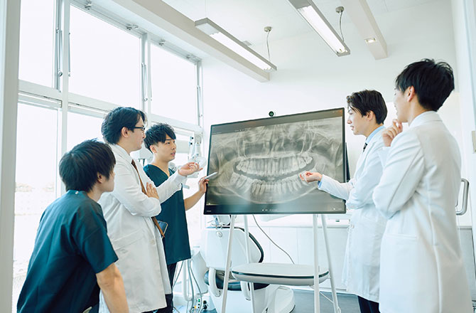 この豊富な実績を支えているのは、グループ全体で実施している症例検討会や、常に最新技術を共有し合う研鑽の積み重ねです。一人ひとりの歯科医師が知見を出し合い、組織として治療の精度を高め続けることで、難症例も含めた質の高い医療を提供しています。