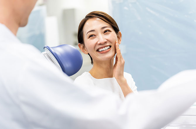 噛み合わせが乱れていると、歯磨きが行き届きにくくなり、虫歯や歯周病のリスクが高まります。また、あごに余計な負担がかかることで、顎関節症のリスクも増加します。当院の定期検診では、歯の状態だけでなく噛み合わせもしっかり確認し、総合的にお口の健康を守ります。