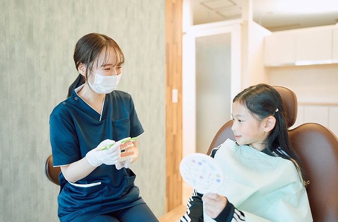 毎日のブラッシングは、虫歯や歯周病を防ぐ基本です。患者さまの歯並びやお口の状態に合わせて、一人ひとりに合ったブラッシング方法を丁寧に指導します。