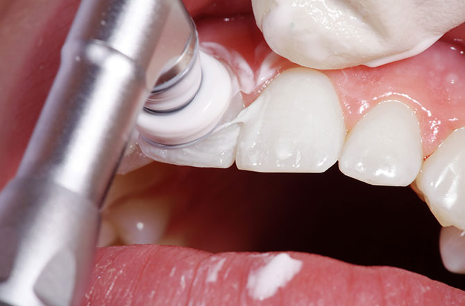 当院では、一般的には自費で行われるPMTCに相当する処置を、保険診療の範囲内で実施しています。歯ブラシでは落とし切れないバイオフィルムや歯垢を取り除き、歯面を清潔にすることで、虫歯や歯周病の予防効果を高めます。仕上げには歯の表面を滑らかに磨き、汚れの再付着も抑制します。